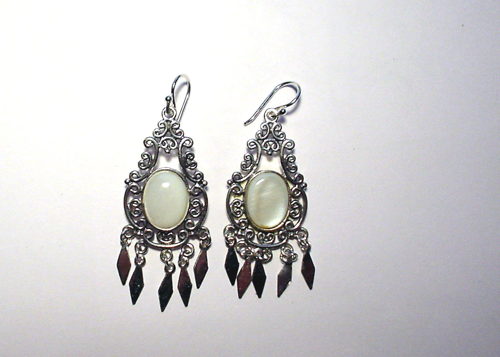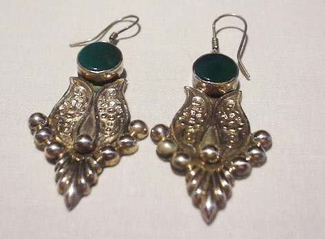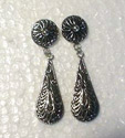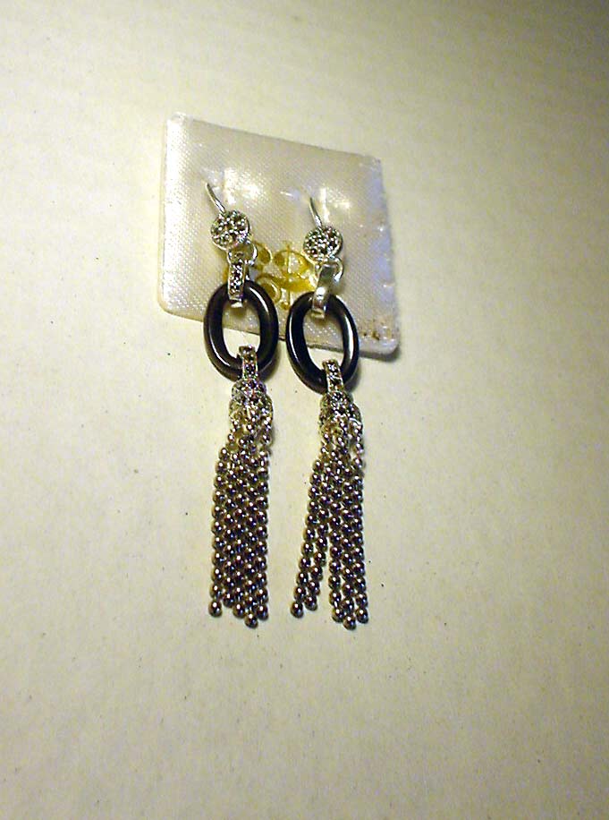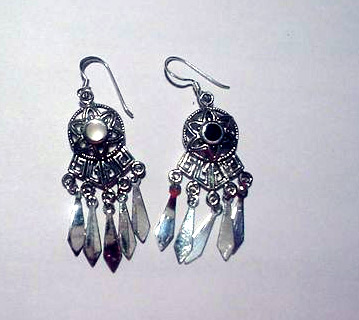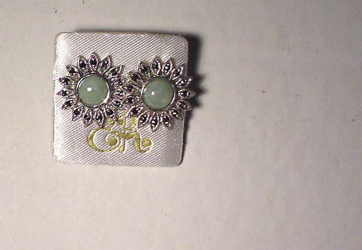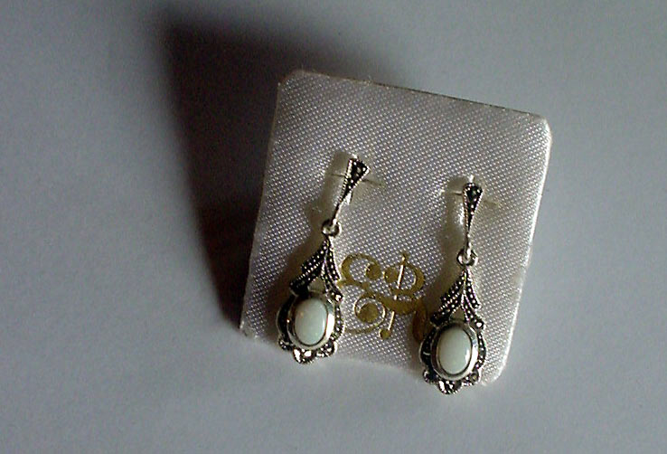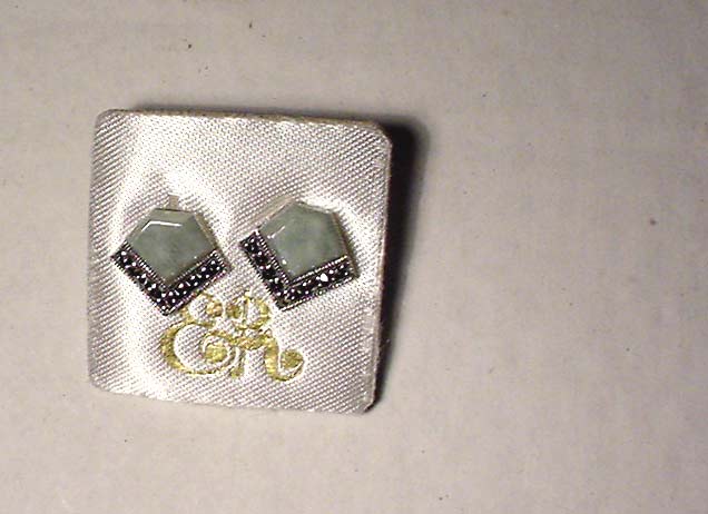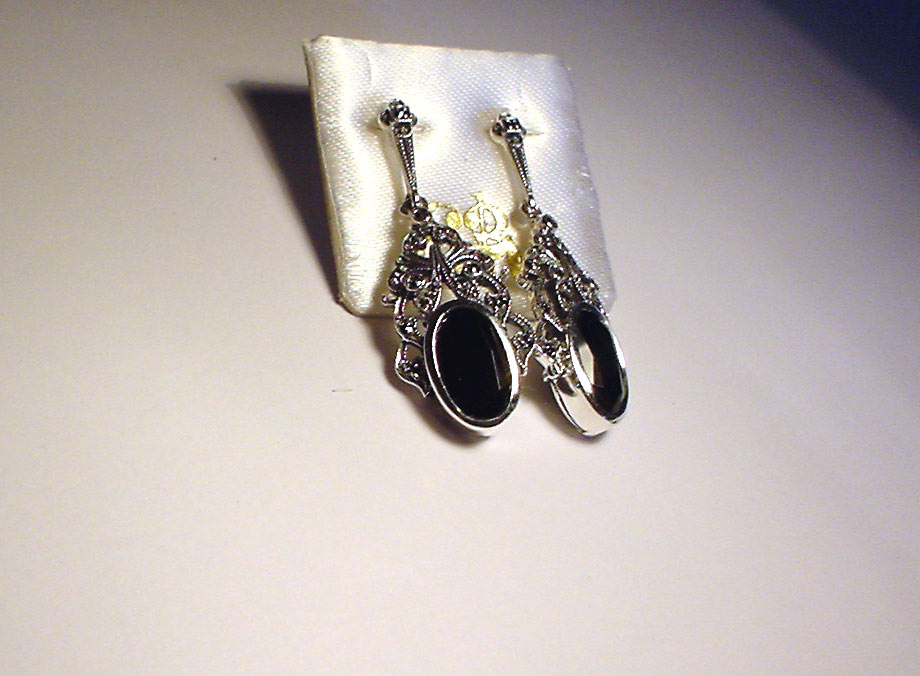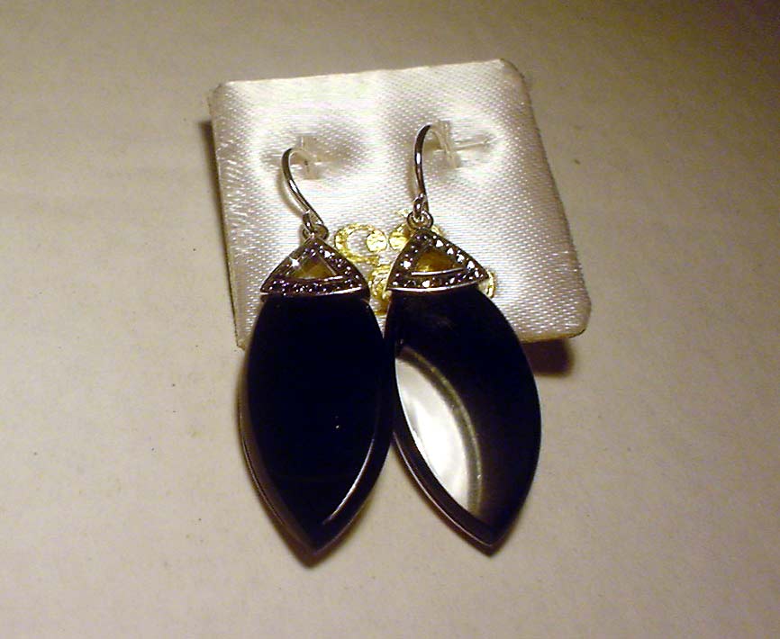 d'oreilles en argent, onyx et marcassite sertie au grain