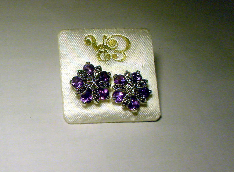 d'oreilles en marcassite et améthyste sertie "au grain"
