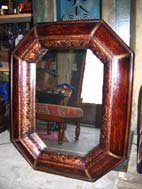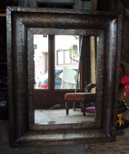 Miroir recouvert de cuivre repoussé, patine brune